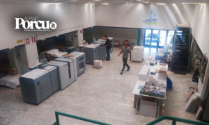 L’ingresso dello stabilimento tipografico, realizzato nella ex Frest, rilevata nel 1985